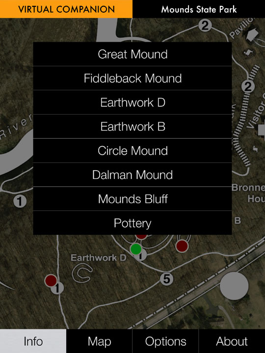 An iOS app designed as a virtual guide to Mounds State Park in Anderson, IN.