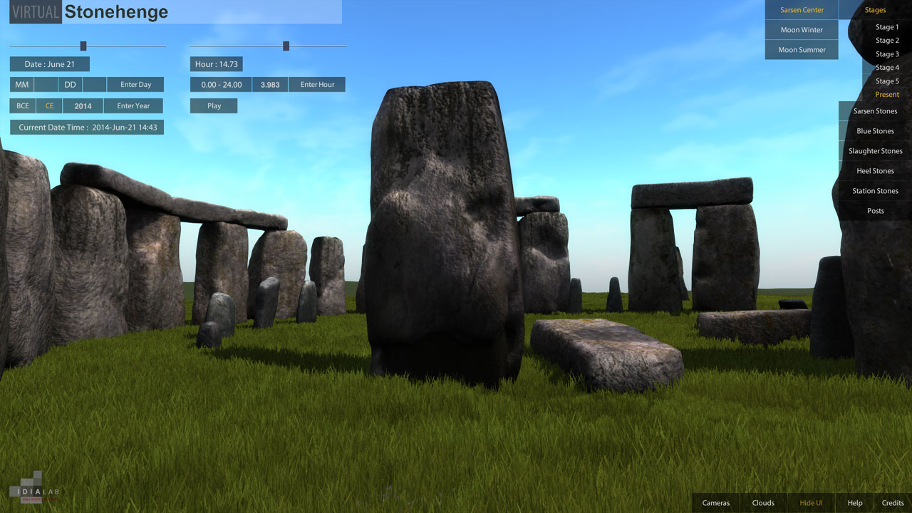 Developed as a multi-user virtual world with a solar tracking feature designed to test ancient solar alignments.