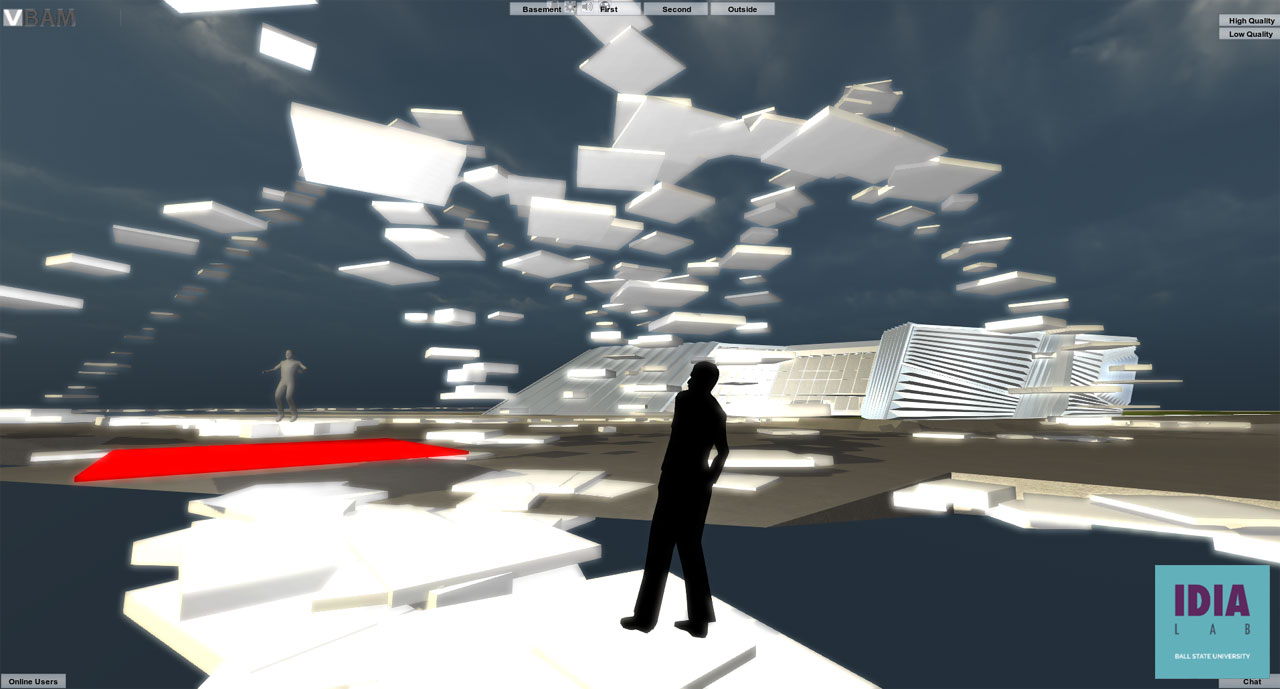 A virtual simulation of the Broad Art Museum at Michigan State University with several virtual interactive art exhibits